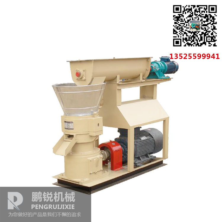 平模顆粒機型采用皮帶及蝸輪蝸桿兩級傳動,轉動平穩、噪聲低、喂料依靠物料自身的重力,避免堵塞、主軸的轉速約為60rpm,壓輥的線速度約為2.5m/s,可有效去除物料中的氣體,增加了產品的緊密程度。